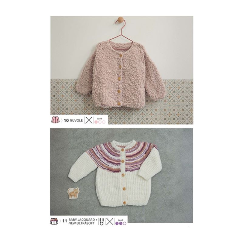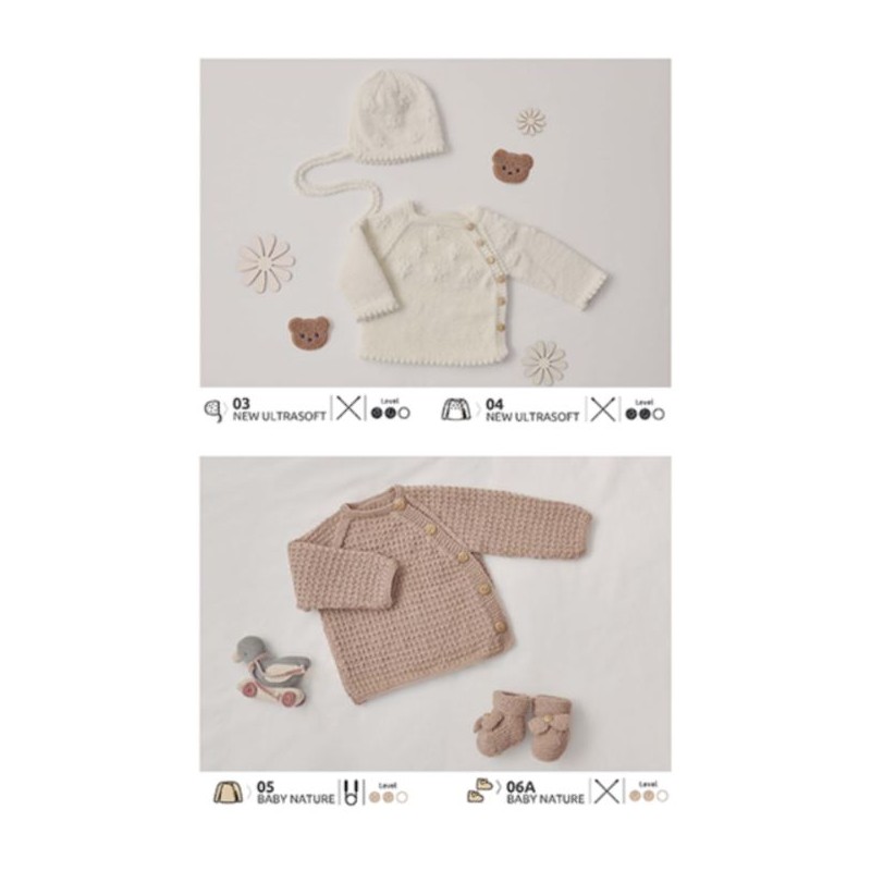 Le catalogue Layette 114 vous propose 34 adorables modèles conçus pour accueillir bébé avec douceur et style. Des vêtements dans des tonalités naturelles, mais aussi dans des coloris vibrants, comme le violet, avec de délicates broderies couleur camel, du jacquard et des côtes anglaises : une source d'inspiration dans les dernières tendances de la mode pour les plus petits. De plus, il inclut de mignons jouets crochetés en fil chenille, comme un petit livre avec des animaux, un panda et un adorable ourson. Une sélection de modèles pensée pour envelopper bébé de douceur et de confort. Découvrez des modèles de tricot et de crochet pour les tout petits et créez des pièces handmade uniques grâce au catalogue Katia Layette 114 !