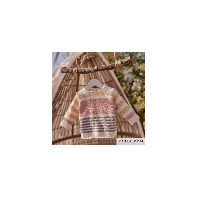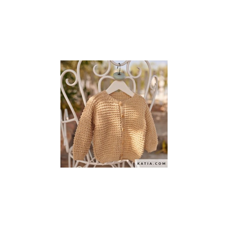 La nouvelle revue Katia Layette 104 est pleine de modèles de tricot et de crochet pour bébés. Les photos des vêtements portés par les bébés, avec cette touche tendre et affectueuse, ont un plus grand rôle à jouer. Découvrez des designs de style rétro, avec des mailles ajourées et des torsades ou des jeux de textures entre différents points. Les imprimés à fines ou larges rayures, bicolores ou multicolores, annoncent l'arrivée de l'été. Pour habiller votre bébé avec des modèles rafraîchissants en style marin! Associez des paires de couleurs: fraîches comme le citron jaune et le bleu ciel, douces comme le banane jaune et le rose poudré, dynamiques comme le turquoise et le rose ou naturelles comme le beige et l'orange. Tous accompagnés de blancs et de naturels. Profitez de le catalogue Katia Layette 104 avec 36 modèles de vêtements et d'accessoires pour bébé.