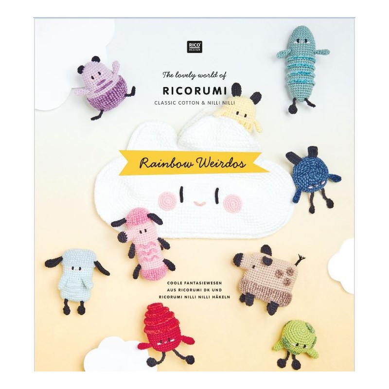 Ce livret Ricorumi, « Les Bizarres de l'Arc-en-ciel », met en scène des personnages amusants aux couleurs de l'arc-en-ciel. Les formes variées de ces drôles de créatures sont crochetées avec les fils Ricorumi DK et Ricorumi Nilli Nilli. Nombre d'entre elles sont réalisées avec les deux fils Ricorumi, ce qui leur donne un aspect plein de vie et démontre une fois de plus la parfaite complémentarité de ces deux fils.