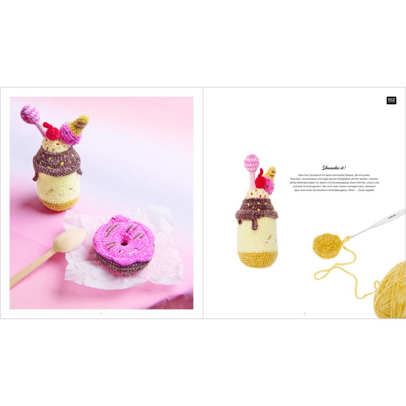 milkshakes à la vanille, donuts, cupcakes aux myrtilles, granités arc-en-ciel et macarons délicats… Toutes ces créations uniques sont crochetées avec le fil chenille Ricorumi Nilli Nilli. La texture douce et chatoyante de ce fil confère à ces douceurs un charme irrésistible. Comme toujours, les instructions claires et les illustrations détaillées vous permettent de crocheter facilement tous les modèles.