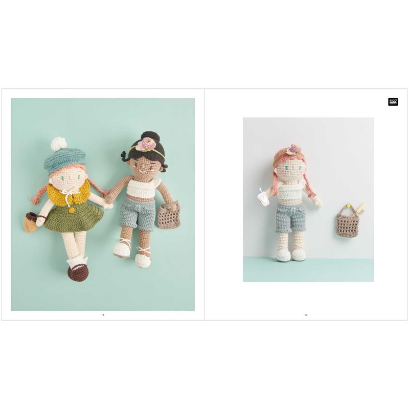 Les poupées font le bonheur de tous les enfants ! Et lorsqu’elles sont faites main et vêtues de vêtements crochetés à la main, elles deviennent indispensables dans leur chambre. Les poupées et leurs vêtements sont crochetés avec la laine Ricorumi DK, très appréciée. Deux modèles de poupées et cinq tenues différentes sont proposés, permettant de créer des ensembles variés et personnalisés.