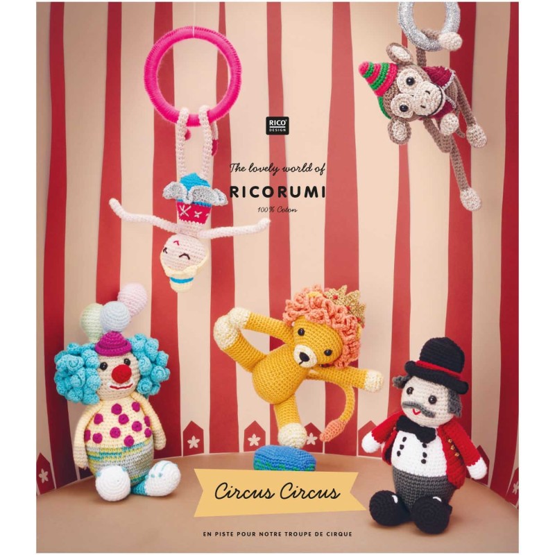 La voie est libre pour le cirque Ricorumi ! Dans ce livret d'instructions, vous trouverez tout ce dont vous avez besoin pour un cirque multicolore. En plus du chapiteau rouge et blanc, vous trouverez des instructions pour un directeur de cirque officiel, un clown amusant, une artiste articulée et des animaux de cirque adorables : l'éléphant, le petit singe et le lion impressionnent avec de superbes tours de force. Les détails super mignons sont caractéristiques de la troupe de cirque multicolore - parfait pour jouer et pour offrir ! Les personnages sont réalisés au crochet avec les pelotes mignonnes de 25 g de Ricorumi, Ricorumi Print, Ricorumi Lamé, Ricorumi Spray et Ricorumi Neon.