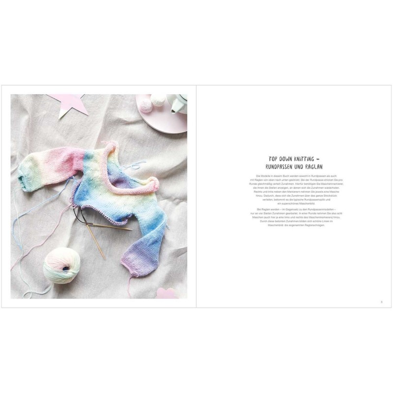 Dans le Rico Babybook n° 35, le tricot se fait de haut en bas. Le livre contient un spécial Top Down Knitting pour les bébés et les jeunes enfants. On y tricote avec le fil Baby Dream dk, très apprécié, en version imprimée et unie.