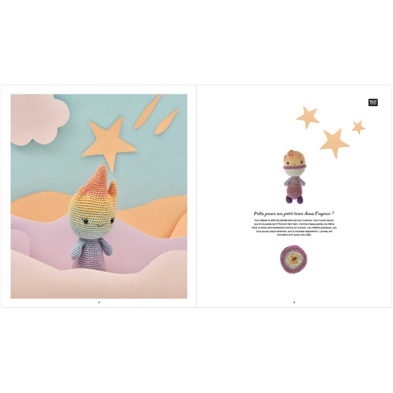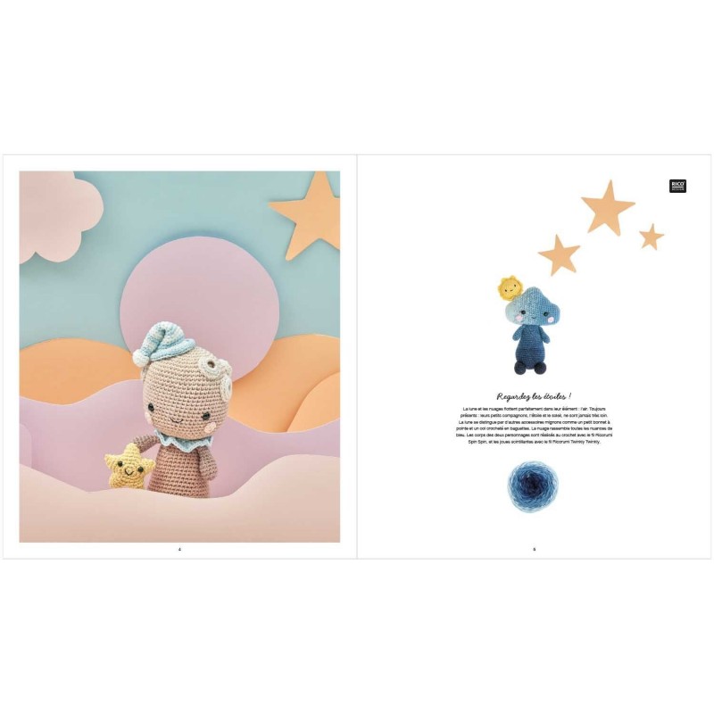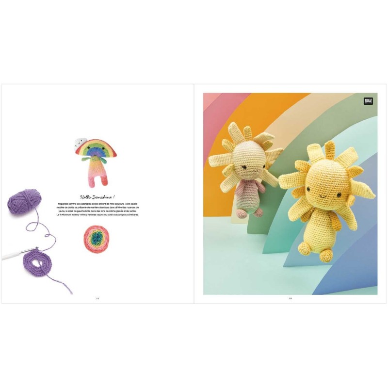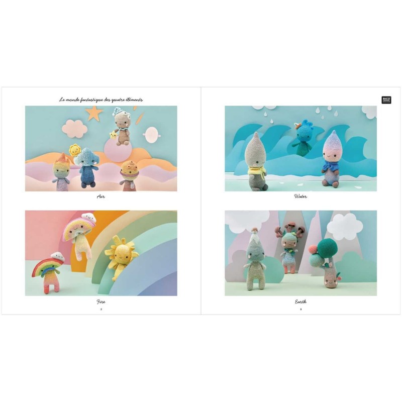Dans le livret d'instructions, nous vous emmenons dans un voyage plein de fantaisie dans le monde des quatre éléments. Avec les fils Ricorumi, nous avons créé des personnages au crochet super mignons qui évoluent dans les éléments air, feu, eau et terre. Vous pourrez y rencontrer la lune, deux soleils, la terre mère, l'eau et bien d'autres personnages. Chaque figure est dotée de dégradés captivants et de détails soignés. Le crochet est réalisé avec les fils Ricorumi Spin Spin, qui crée de superbes dégradés de couleurs, et Ricorumi Twinkly Twinkly, qui est ennobli d'un fil scintillant. Spin Spin est présenté dans une pelote à gâteau pratique de 50 g, ce qui permet de bien voir les dégradés et de réaliser des figures un peu plus grandes. Grâce aux explications des instructions pas à pas, toutes les figures sont faciles à réaliser.