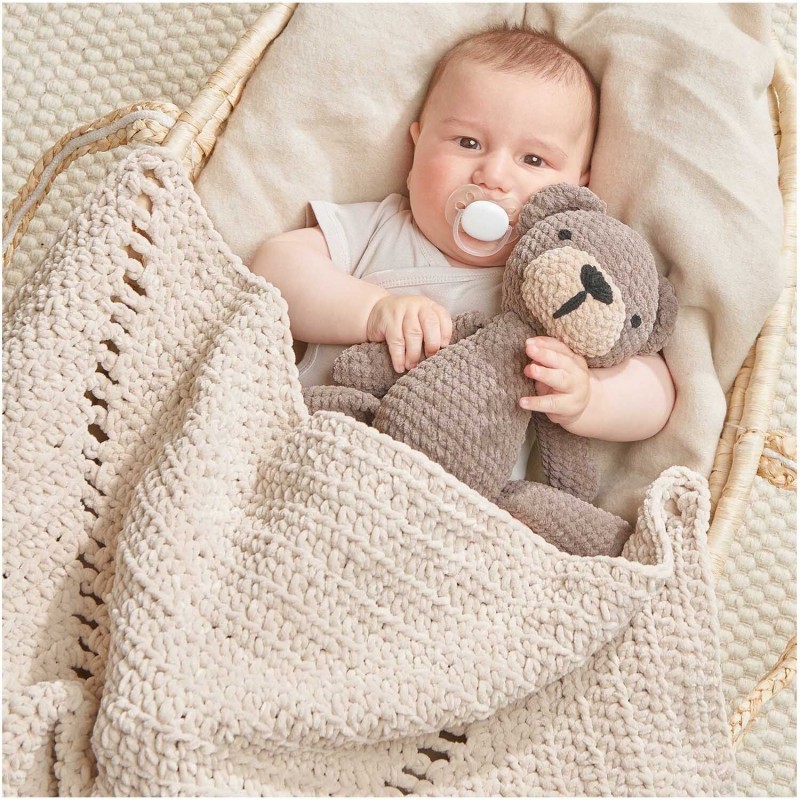 Creative Chenillove est un fil chenille classique en 100% polyester. Le fil rond régulier à la structure chenille dense a un éclat mat noble et convient parfaitement au crochet et au tricot d'accessoires pour bébés. Ce fil de haute qualité permet d'obtenir des mailles incroyablement belles. Selon le type et la grosseur de l'aiguille, il permet de générer soit un résultat doux pour une couverture, soit un travail ferme et stable pour des doudous.