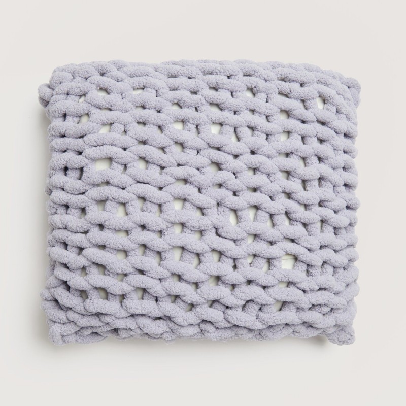 Creative Chenillove Super Big est un fil chenille super épais, 100% polyester. Il se travaille soit avec une aiguille très épaisse (25 mm), soit avec les doigts. Cette qualité douillette est idéale pour les accessoires Home comme les couvertures, les coussins ou les paniers. Ces derniers nécessitent une plus grande stabilité, il est donc préférable de les réaliser au crochet et de tricoter les couvertures. Sur la banderole, vous trouverez des instructions pour une couverture douce.