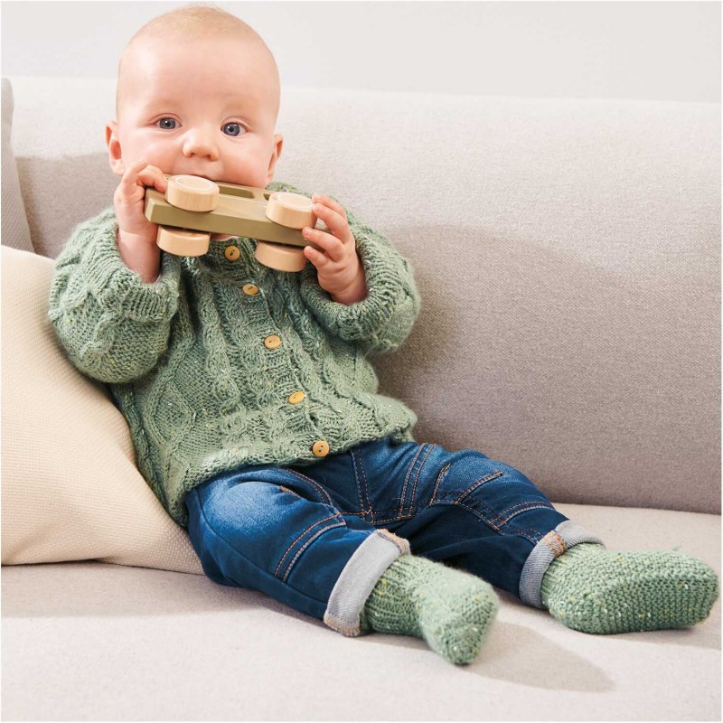 Le fil pour bébé très apprécié Rico Baby Dream dk existe également en version tweed. Les couleurs tweed se combinent parfaitement avec les couleurs unies et imprimées, ce qui permet de créer des tenues harmonieuses pour les tout-petits