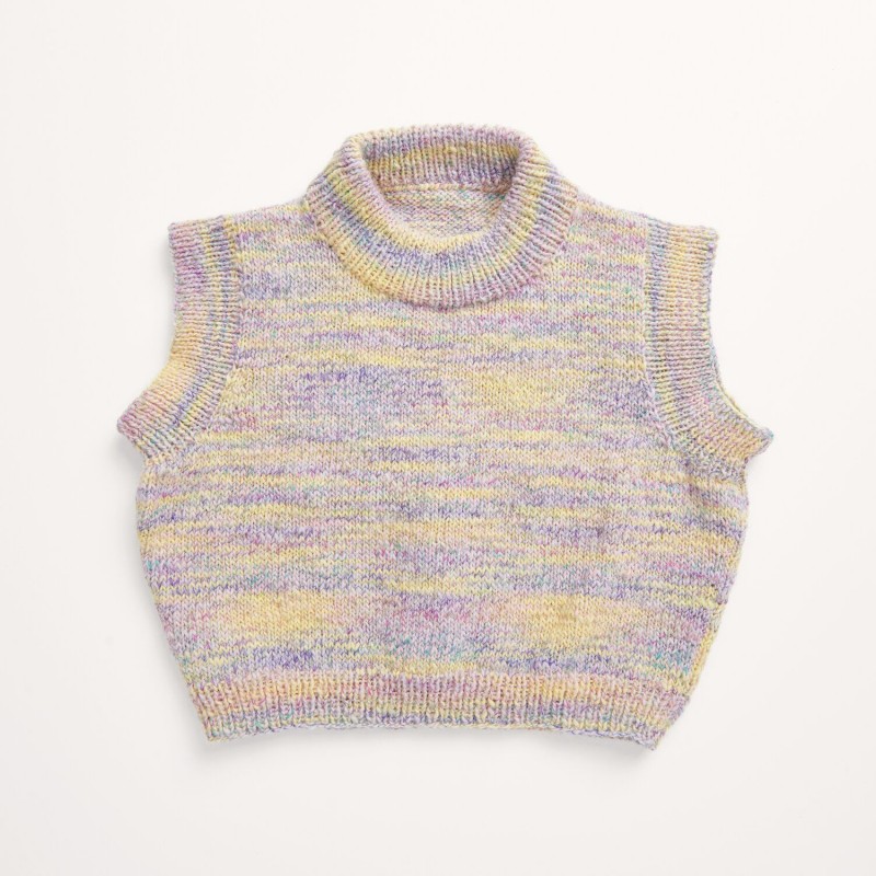 Dans Creative Colour Shift, 2 fils aux dégradés de couleurs différents sont torsadés l'un dans l'autre et donnent au fil son aspect torsadé caractéristique. Les tricots n'ont pas d'imprimé à rayures classique, mais des surfaces de couleurs qui s'entrecroisent et qui se déplacent naturellement en fonction de la largeur du tricot. Parmi les couleurs, on trouve aussi bien des couleurs tonales que des couleurs vives, aussi bien des couleurs claires que des couleurs foncées. La forte proportion d'acrylique dans le fil rend les tricots légers et souples.
