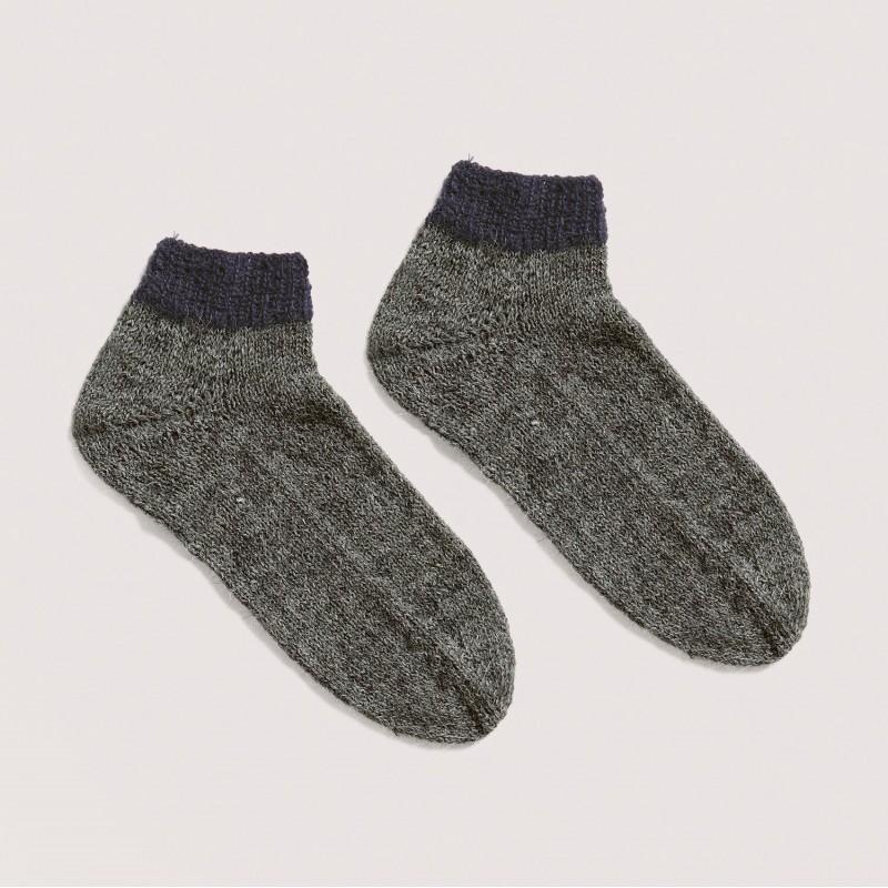 • Modèle 19 Chaussettes** : 100 gr. du 42/43 au 46/47 coloris 006 (olive) et coloris 007 (gris)