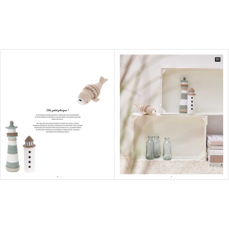 Dans ce cahier d'instructions, nous partons à la mer. Avec ces magnifiques figurines, une brise marine fraîche souffle dans la maison. Le livre montre comment crocheter des motifs maritimes comme des phares, des mouettes, des poissons et un adorable phoque. Le crochet se fait avec les pelotes pratiques de 25 g du fil de coton très apprécié Ricorumi dans les couleurs classiques de la côte. En tant que décoration d'intérieur pleine d'ambiance, ces modèles modernes apportent instantanément une ambiance de plage dans vos quatre murs.