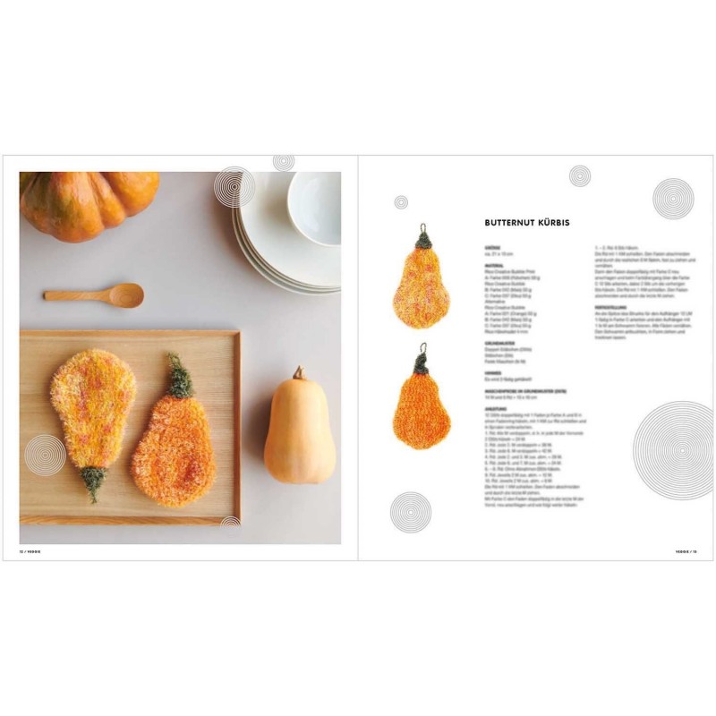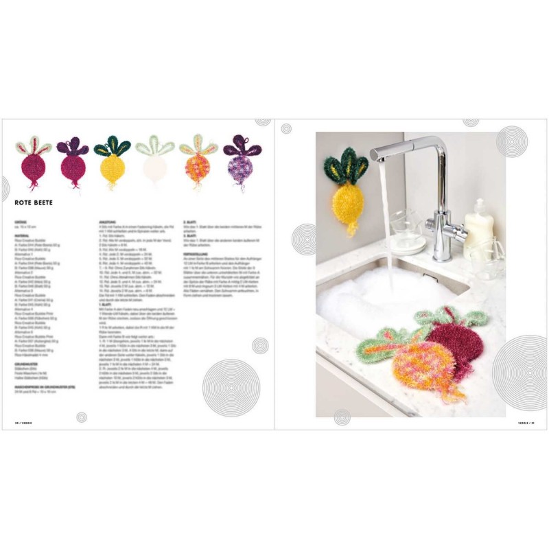 Le cahier Creative Bubble "Veggie" est entièrement consacré aux légumes. Il présente de superbes éponges à vaisselle et des décorations de cuisine en forme de légumes frais du marché dans de superbes couleurs. Réjouissez-vous de voir des navets, du maïs, des aubergines, des brocolis, des courges et autres. Grâce aux instructions faciles à comprendre et aux illustrations détaillées, tous les modèles sont faciles à crocheter.