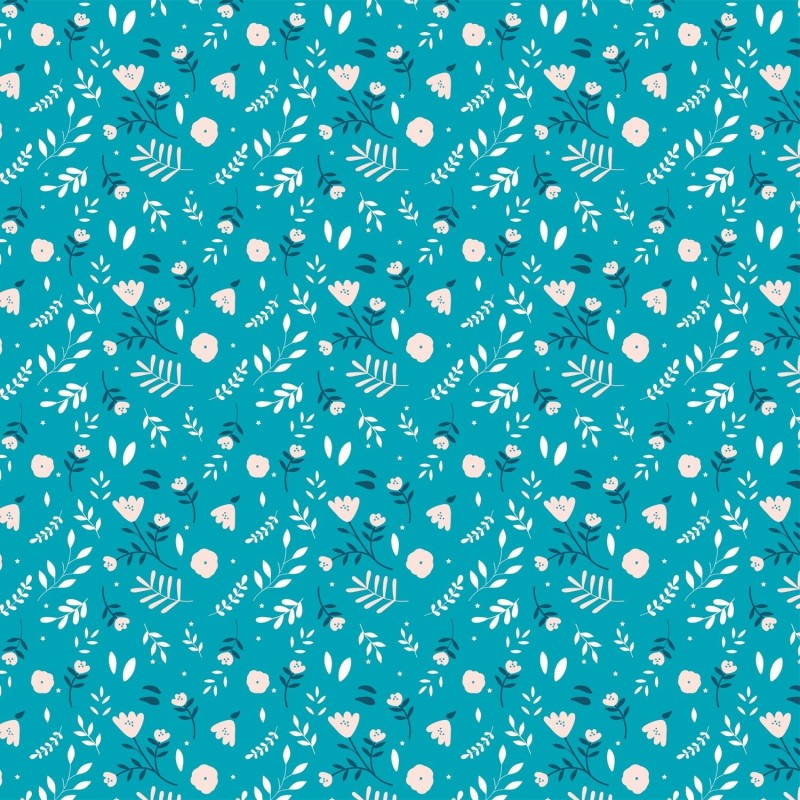Tissu au motif fleuri sur un fond turquoise 100% coton. Parfait pour coudre des robes, blouses ou combinaisons pour l'été.